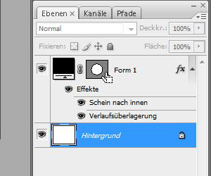 und wählen Sie im Menü die Option "Schein nach innen..." oder gehen Sie in der Menüleiste auf Ebene->Ebenenstil->Schein nach innen...